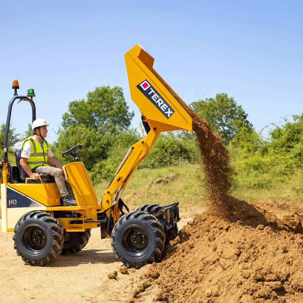 Kolový dumper Terex HD1000 je ideálním pomocníkem na stavbách, při terénních úpravách i v zahradnictví. Díky kompaktním rozměrům a šířce pod 1 m projede úzkými prostory, stavebními bránami i mezi budovami, kde se větší stroje nevejdou. Přesto nabízí nosnost 1 000 kg a objem korby až 577 litrů, což z něj dělá výkonného partnera pro přepravu sypkých materiálů.