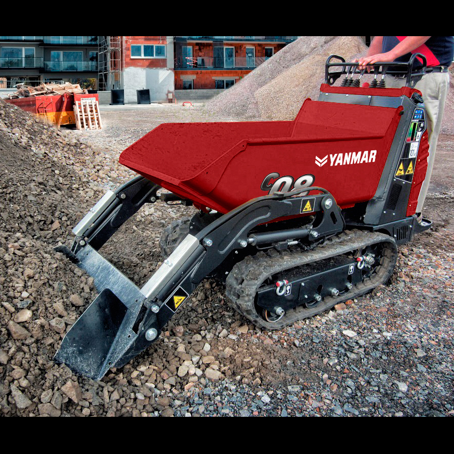 Minidumper Yanmar C08-A je robustní pásová přepravní jednotka, která je ideální pro stavebnictví, zahradnictví i jakékoli práce v náročném terénu. Díky své konstrukci s pásy navrženými pro stabilitu a trakci zvládne pohyb i na svažitém či nerovném terénu, kde klasické dumpry selhávají.