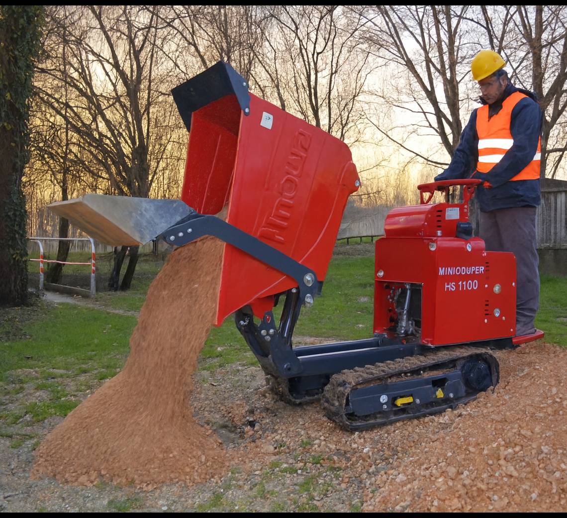 • Samonakládací pásový dumper Hinowa HS 1100 je kompaktní a výkonný stroj určený pro přepravu sypkých materiálů na stavbách, při výkopech a v obtížně přístupném terénu. Díky samonakládací lopatě a výkonnému benzínovému motoru Honda GX390 o výkonu 8,7 kW je ideální pro efektivní práci i ve stísněných podmínkách.